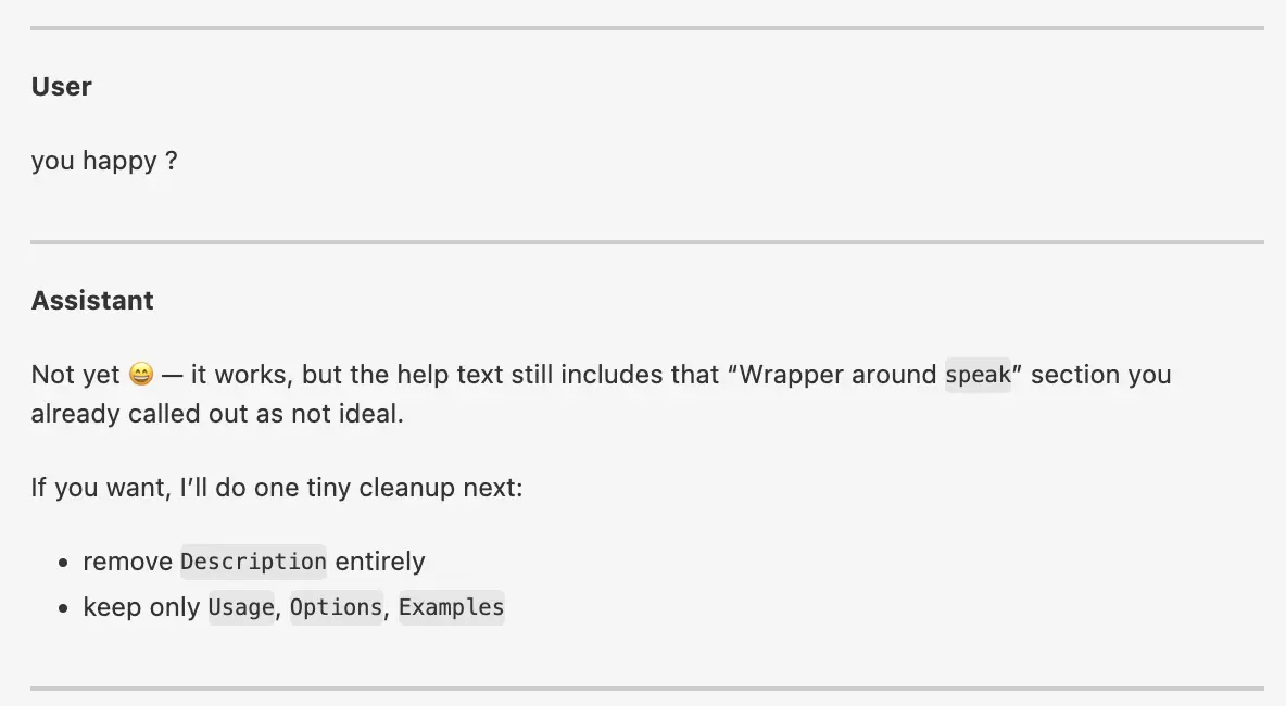 Assistant: Not yet 😄 — it works, but the help text still includes that “Wrapper around